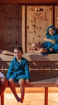 In unserer Textilsauna erleben Kinder erste Wohlfühlmomente bei angenehmer Wärme – ganz ohne heiße Überraschungen. Bei milden Temperaturen können kleine Wellnessfans gemeinsam mit Mama und Papa ins Schwitzen kommen, ohne sich unwohl zu fühlen. Saunagänge stärken das Immunsystem und helfen, besser zu schlafen. Danach geht’s in die Stille Alm – ein Ruhebereich extra für Familien!