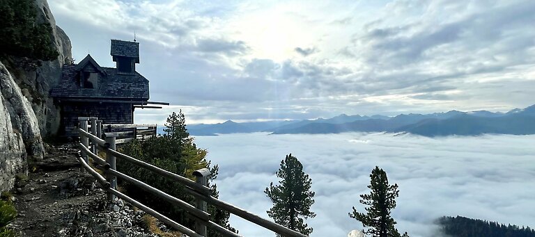 Vom Parkplatz 1 oder 2 führt ein teils schmaler Wanderweg den Felsen entlang, in ca. 25 min. zum Friedenskircherl. Wer hier noch nicht genug hat, geht noch bis zum Gipfel weiter. Ein Stück zurück, bis zur Statue Peter Rosseggers (der leichtere Weg) oder beim Kircherl vorbei. Dieser ausgesetzte Weg erfordert allerdings absolute Trittsichert und Sie sollten schwindelfrei sein. Die ganz sportlichen erklimmen den Gipfel über einen der Klettersteige. Aber am besten schließen Sie sich unseren Wanderführern an, die Sie das ganze Jahr über zum Stoderzinken begleiten (gratis!).