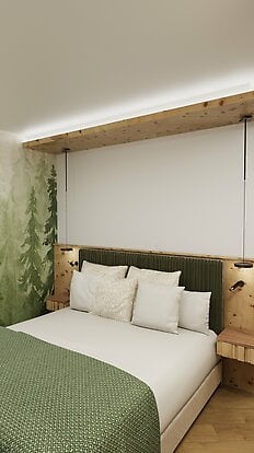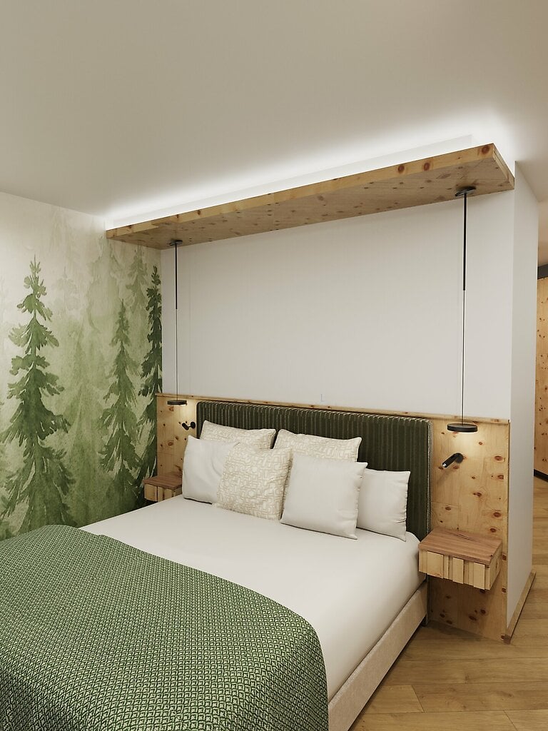 Ideal for families looking for stylish comfort and plenty of space to relax. The Waldreich family room combines modern naturalness with a well thought-out room layout - two separate bedrooms ensure privacy, while the living area with sofa and seating area allows cosy get-togethers.