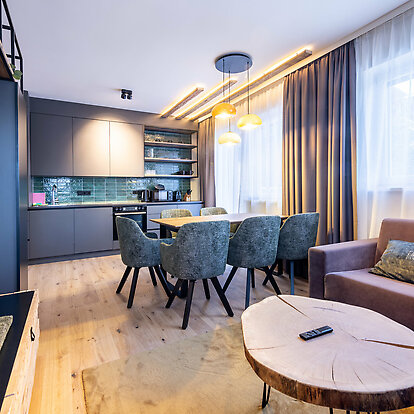 - Two bedrooms, each with a double bed to guarantee a restful night's sleep, spacious double sofa bed with pull-out function for two people